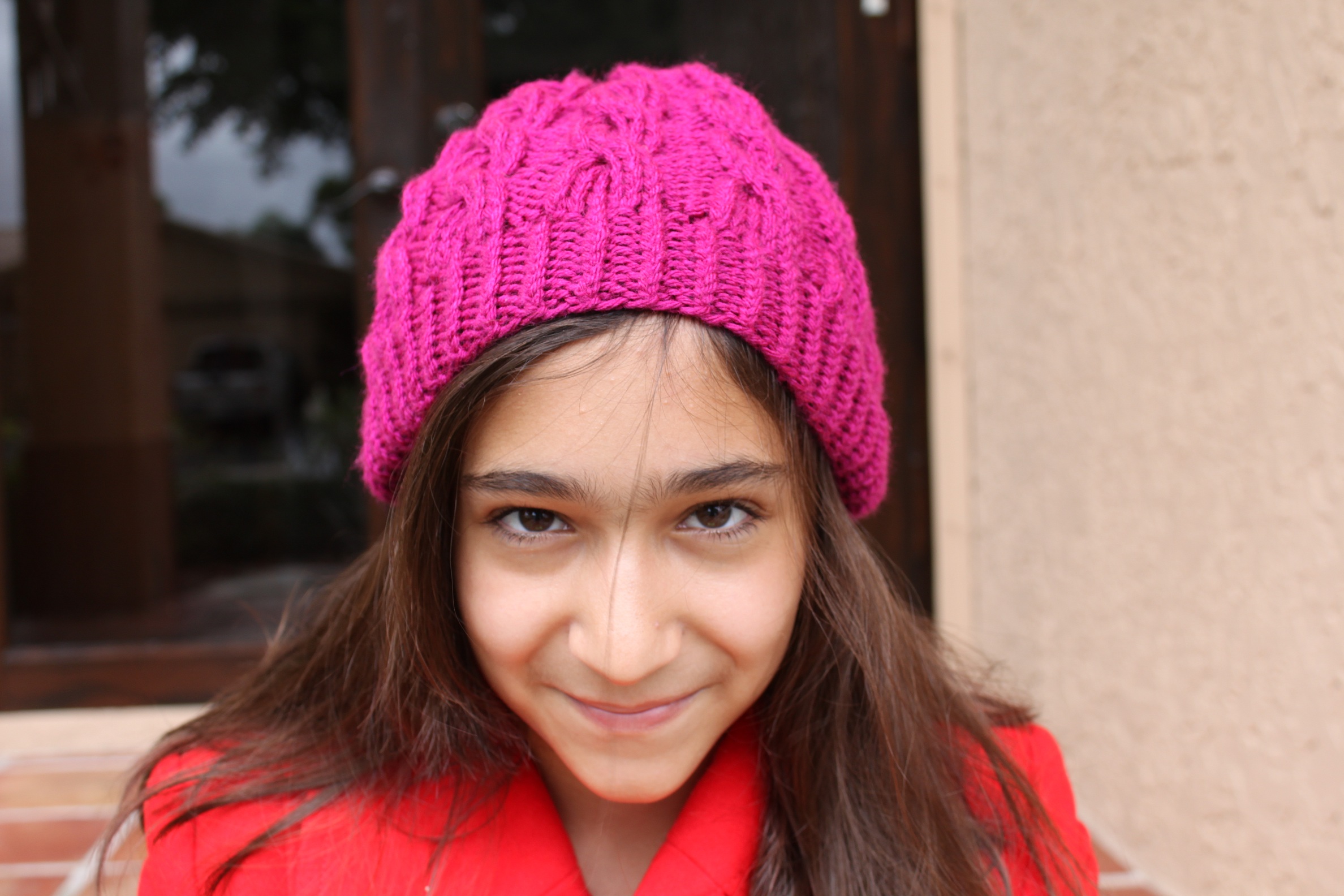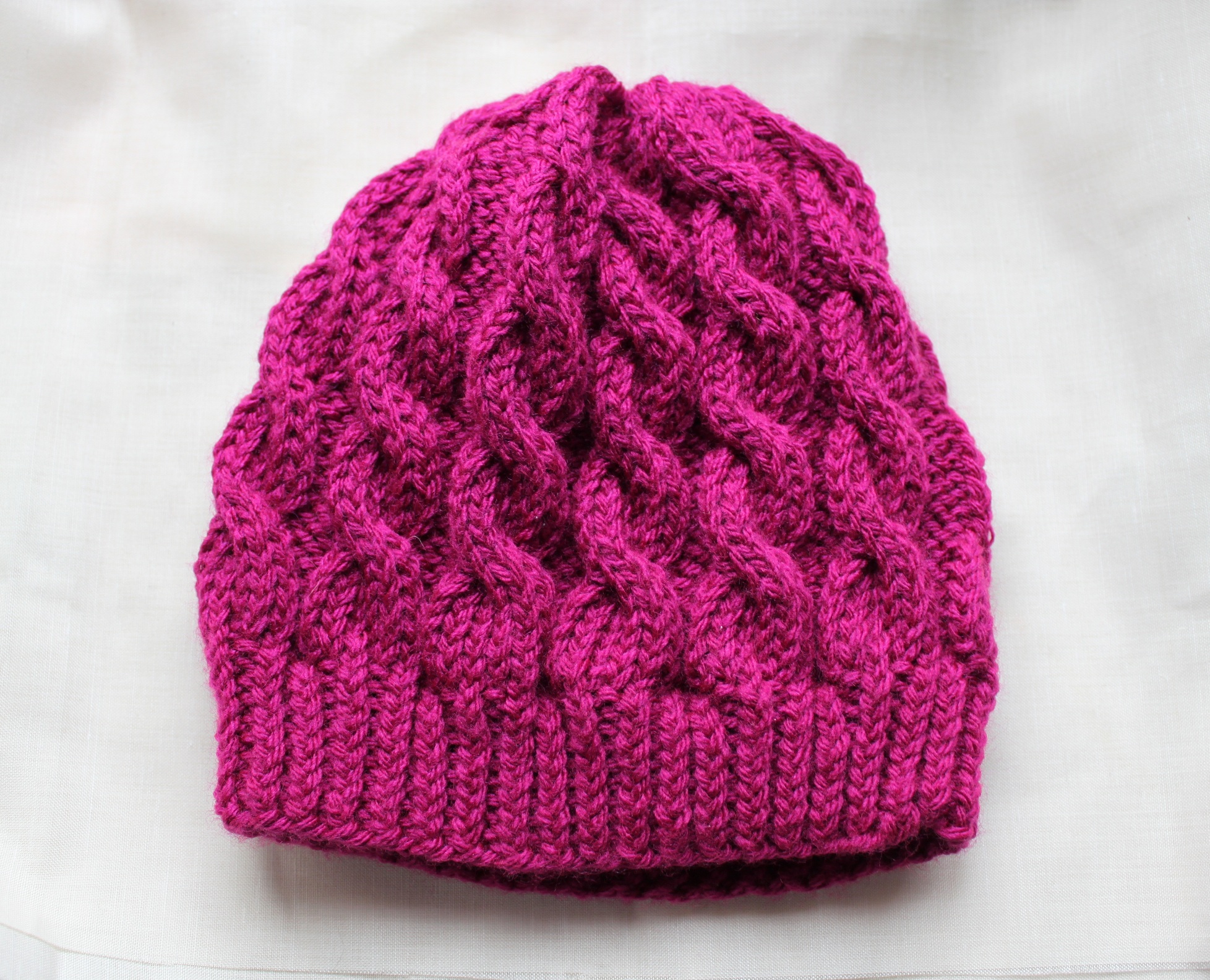 a pattycakes glee inspired knit, this bright magenta cabled beanie is perfect for any true star!